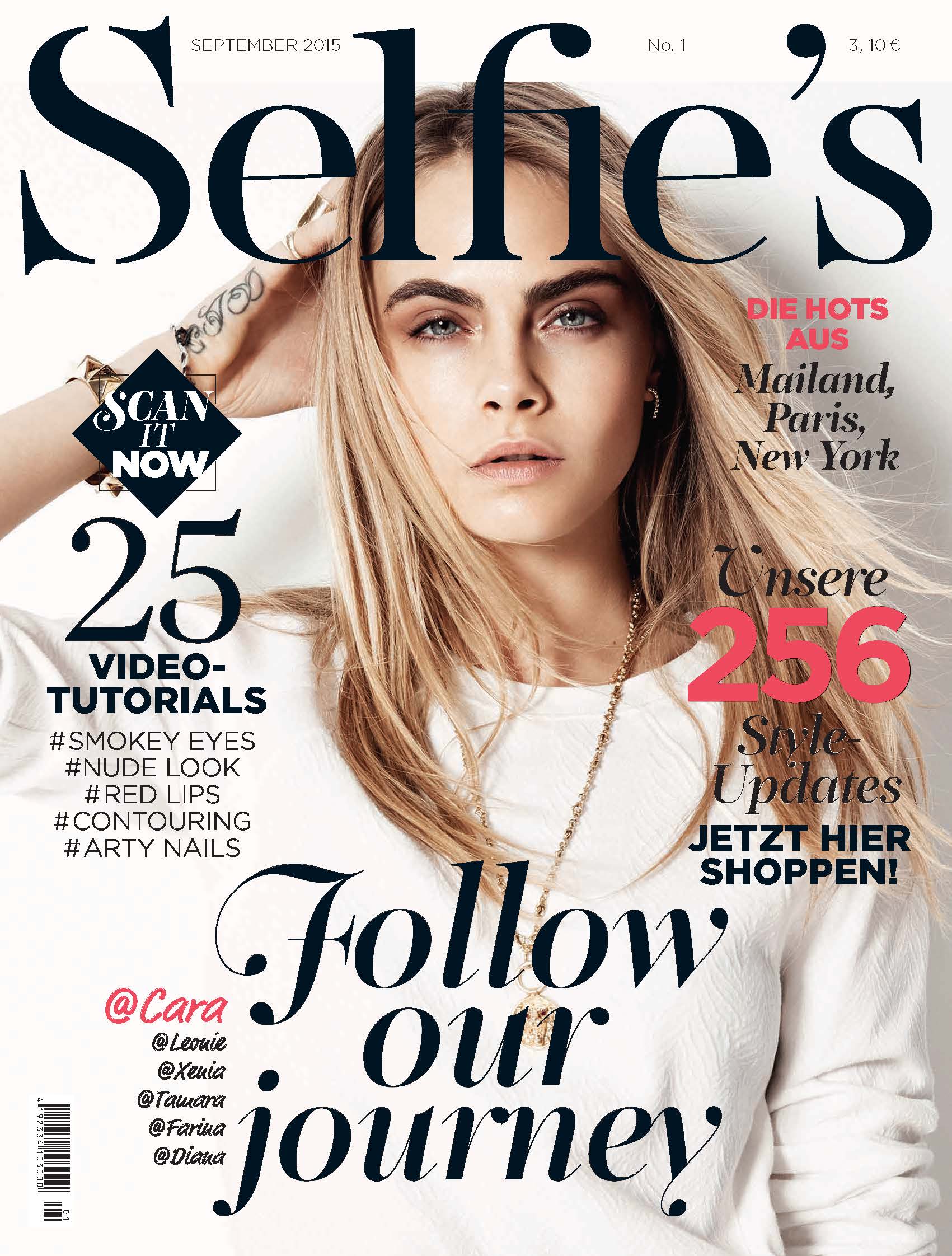 Selfie`s ist das erste High End Fashion Magazine der Welt, das vollständig 360 Grad aufgebaut ist und über scannbare Inhalte verfügt. Mit sämtlichen Social Media Kanälen, Mobile App, Online-Auftritt und monatlichem Hochglanz-Printmagazin wagt es den Schritt in die Zukunft.